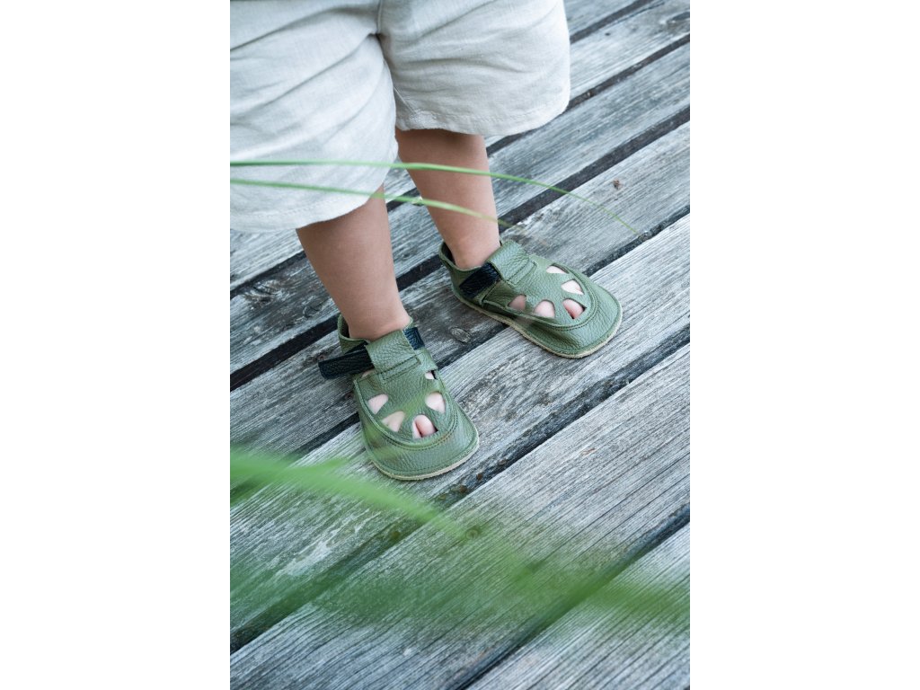 Kids' indoor/outdoor barefoot sandals from the Slovak brand Baby Bare Shoes are made of soft Italian leather. The SUMMER PERFORATION shoes feature enlarged perforations in the instep and heel areas and are stitched at the front, providing more space for the toes.